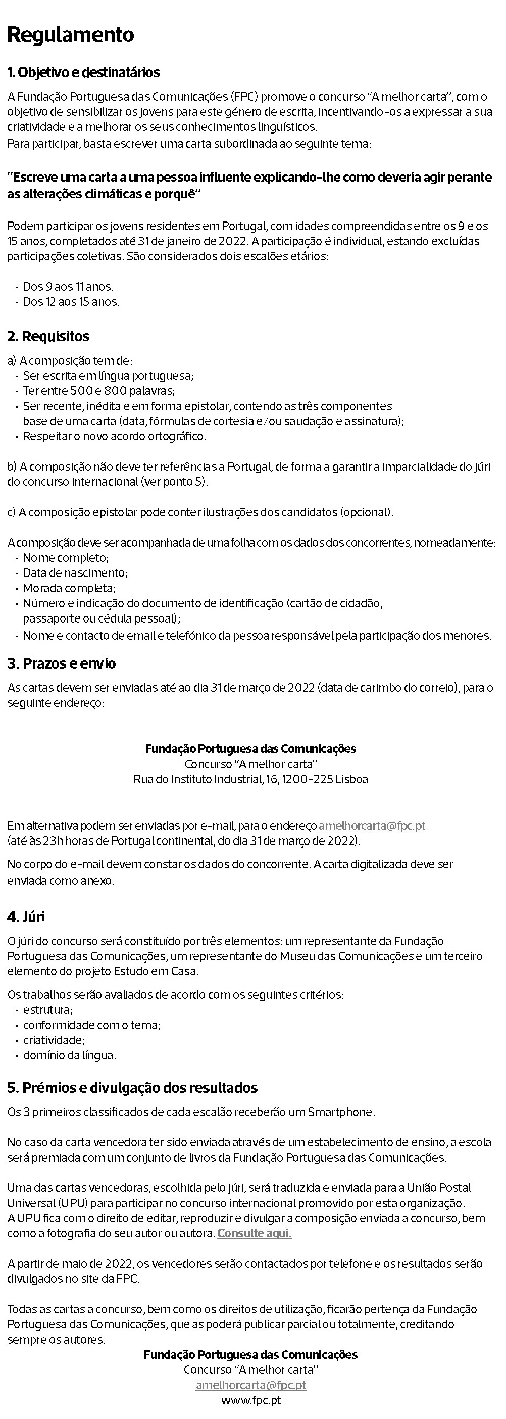 “A melhor carta” promovido pela Fundação Portuguesa das Comunicações. As